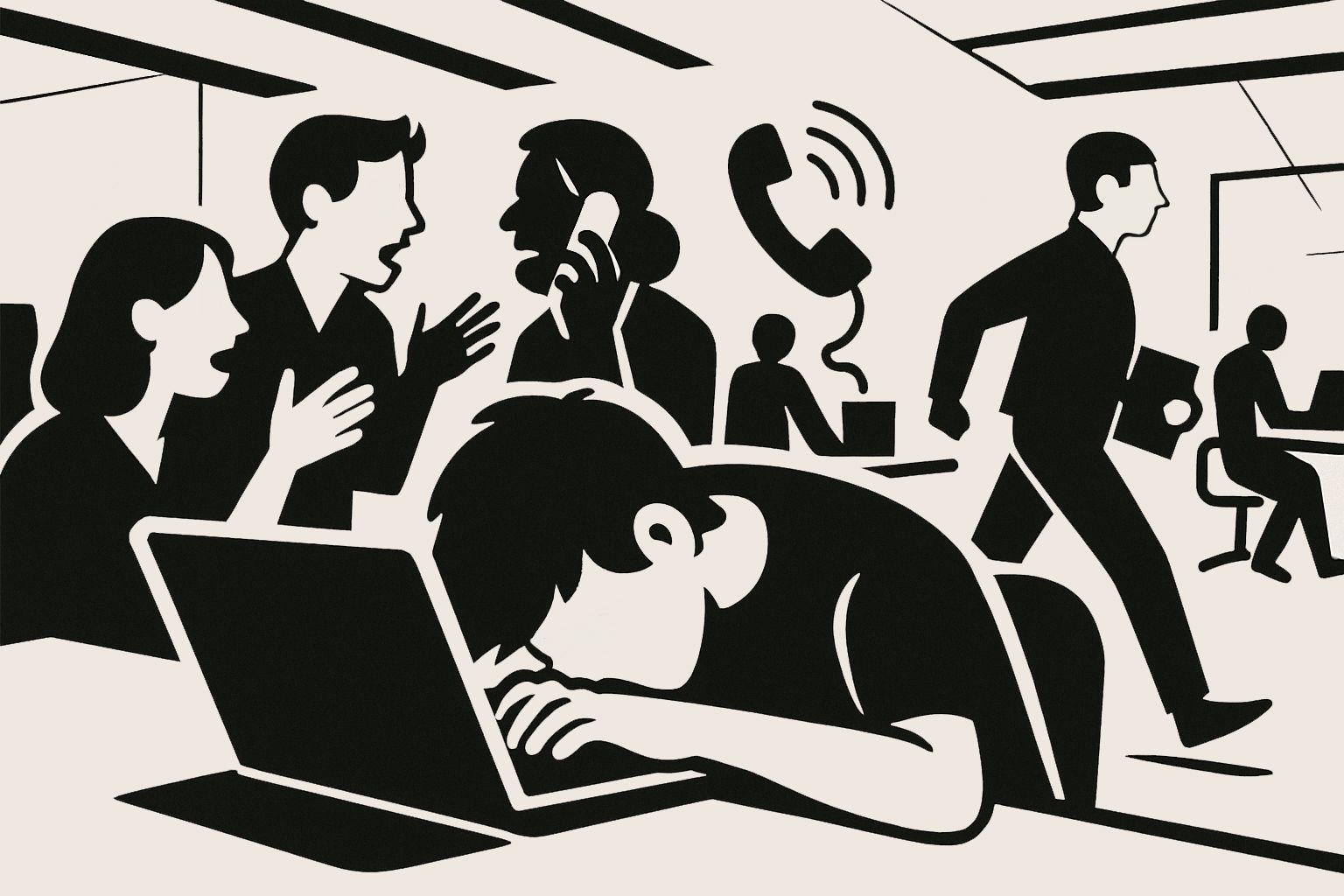 Çoğu zaman tam anlamıyla bir kaostur. Eğer farklı departmanlar aynı açık ofis alanını paylaşıyorsa, bu kaos daha da katlanacaktır. Ofiste ses asla bitmez; sürekli bir hareketlilik ve koşturmaca hakimdir.